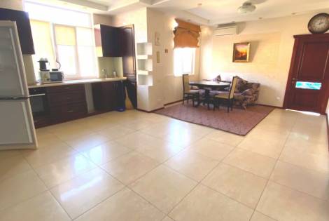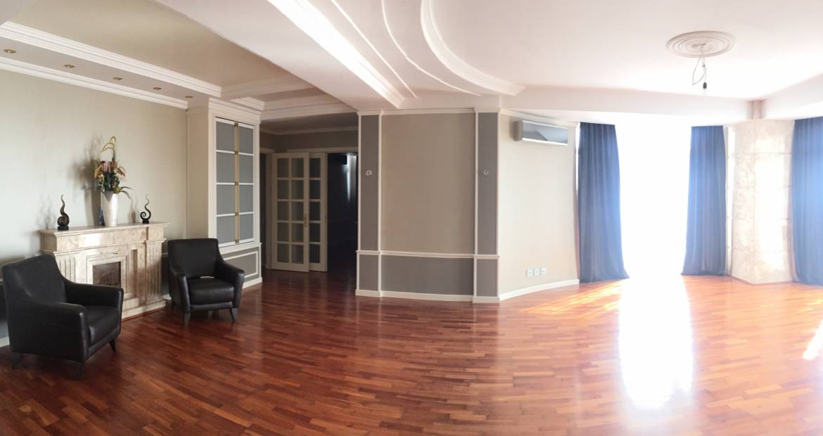 Арт. 3244274 Видовая 3 -х комнатная квартира расположена на 5 этаже 14 этажного дома . ОП 172 кв.м.: кухня- столовая 30,8 кв.м.; 2 санузла (7,3/8 кв.м.); 2 спальни (14,3/17,3); прихожая+гостиная 62,9 кв.м.; панорамный балкон 10,9 и лоджия 20,4 кв.м. Высота потолков 3,08 м. В квартире сделан дизайнерский евроремонт с использованием европейских экологически чистых отделочных материалов. Установлены дорогие двери из натурального дерева, паркет, кондиционеры, современные оконные системы, кафель с подогровом, приборы индивидуального учета воды и тепла. В санузлах сантехника Villeroy Boch. Дом высокого качества: монолитно-кирпичный, подземная парковка. Своя автономная котельная. Импортные лифты. Дом обслуживается ТСН, круглосуточная охрана, видео наблюдение, подземный паркинг. До набережной Ялты 10 минут пешком. Из квартиры открывается потрясающий вид на море и горы. В стоимость квартиры входит подсобное помещение и подземный паркинг на этаже. Цена экв. 420 000 долларов США.