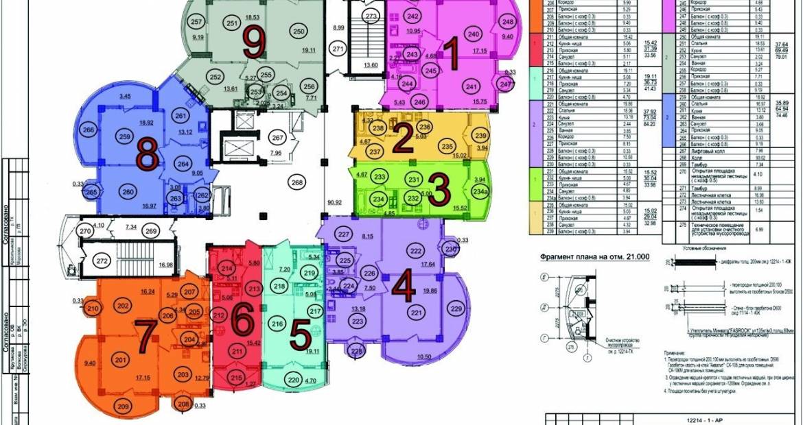 Квартира площадью 79.01 м.кв. расположена 7ом этаже 11-ти эт. дома. На плане дома обозначена тип 9. В квартире две изолированные комнаты, кухня, санузел, гардеробная, прихожая, 2 балкона. Балконы общей площадью 7 кв.м. не входят в площадь квартиры.