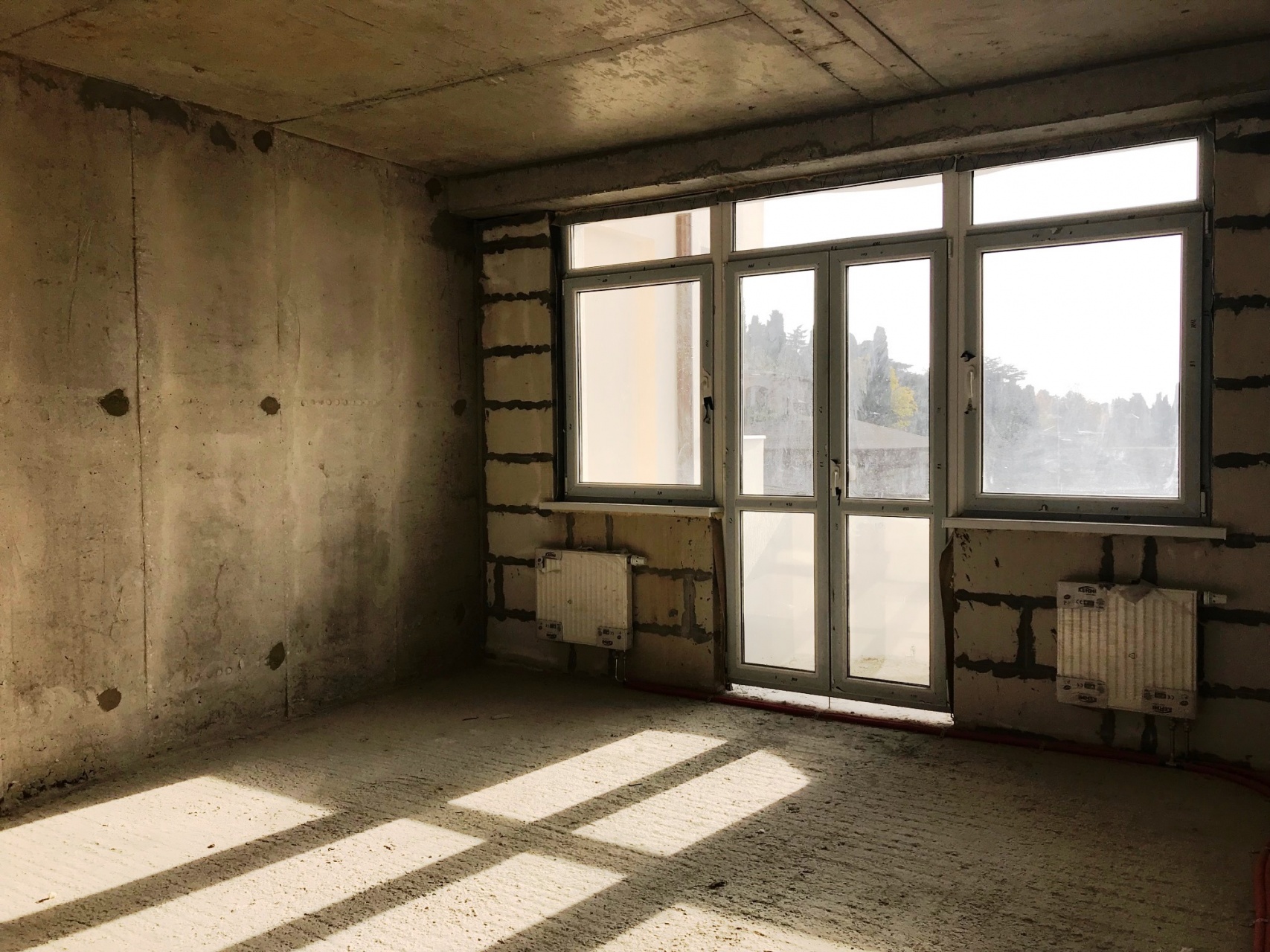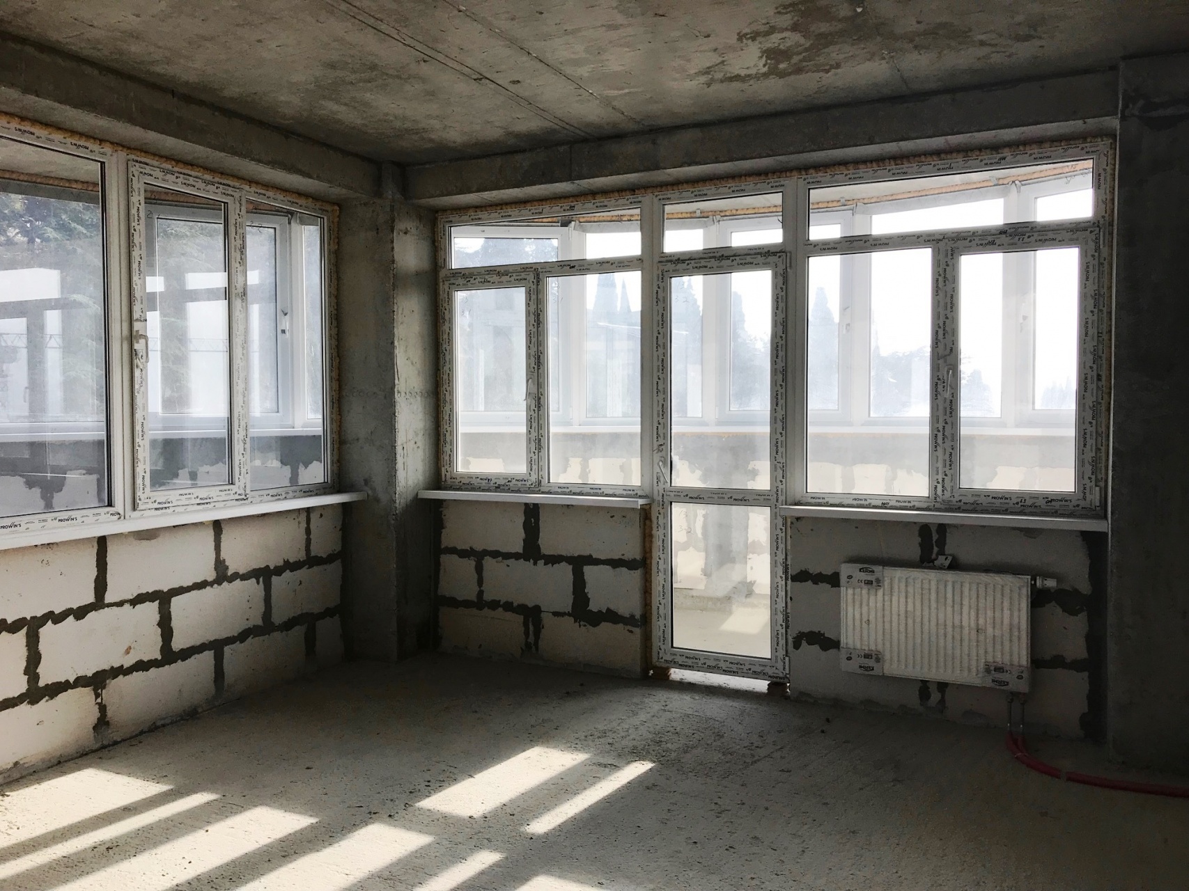 Квартира под отделку с установленными межкомнатными перегородками, окна метало пластик, заведены все коммуникации, разводка отопления с установкой радиаторов.