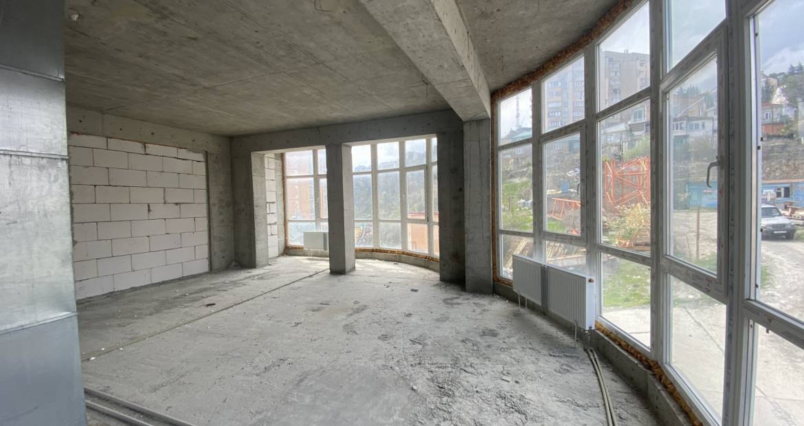 Апартаменты расположены на 5-ом этаже 10 этажного дома. Апартаменты без отделки, планировка свободная. Можно спланировать свой как 2-х комнатный апартамент . Остекление панорамное. Окна выходят во двор.