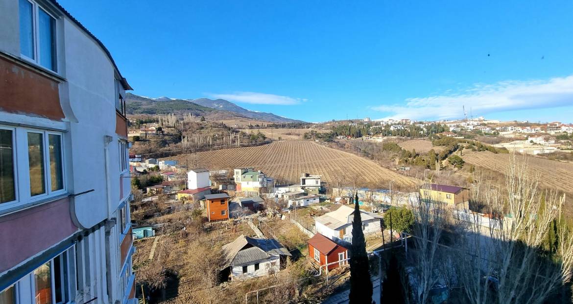 Комнаты изолированые 12 и 17 метров кухня 9 метров с выходом на большую лоджию 4,3 метра. Санузел раздельный. В квартире центральное отопление и водоснобжение, плита газовая. Из окон шикарный вид на горы и море. В шаговой доступности школа, магазины, рынок, дет садик, поликлиника, остановка маршрктного такси.