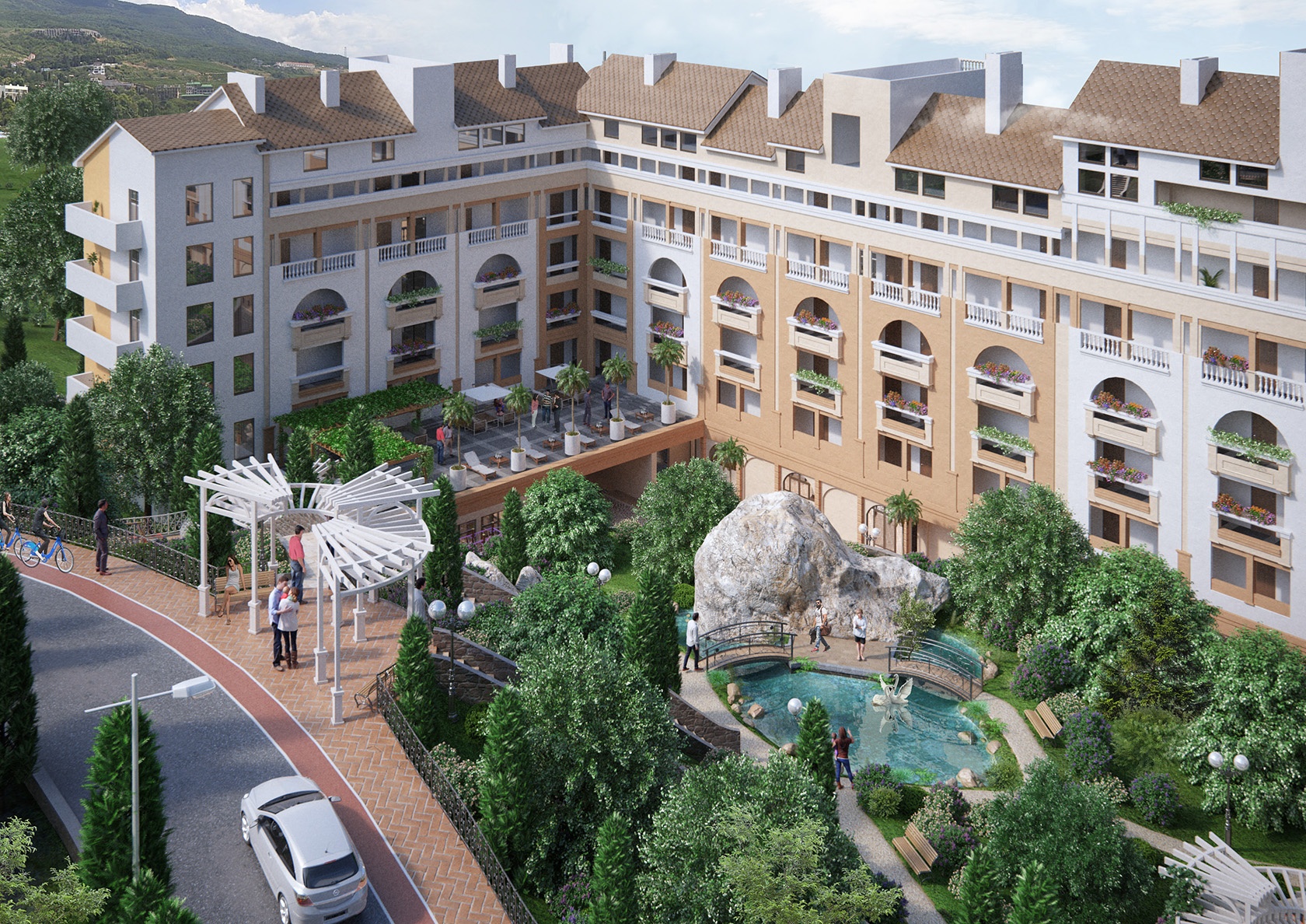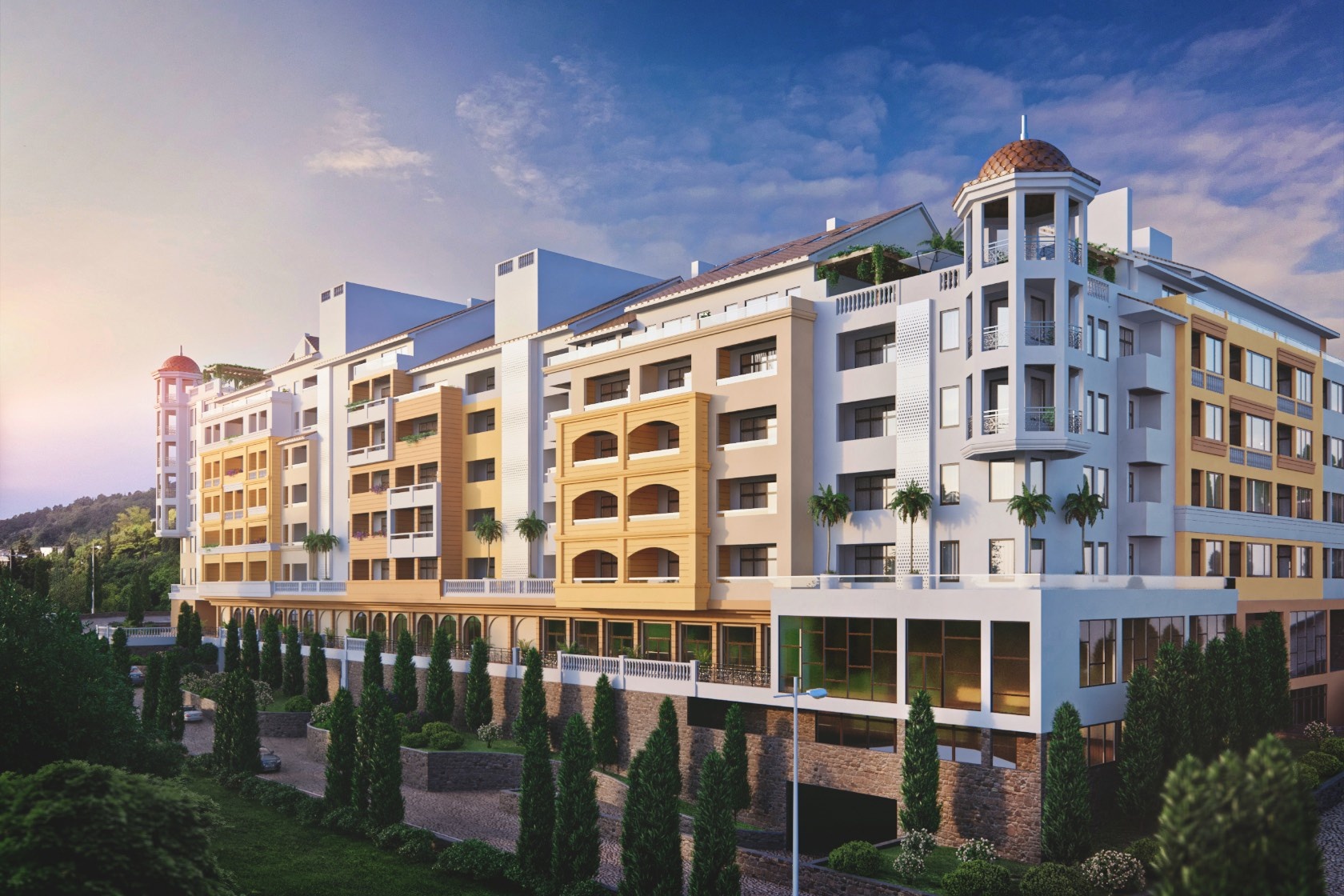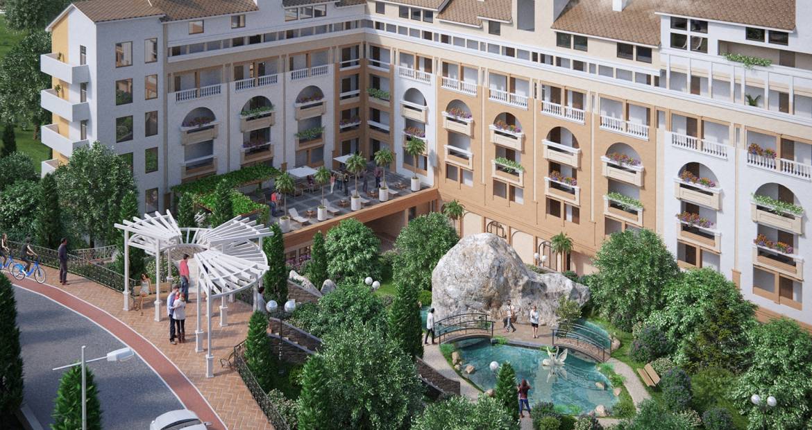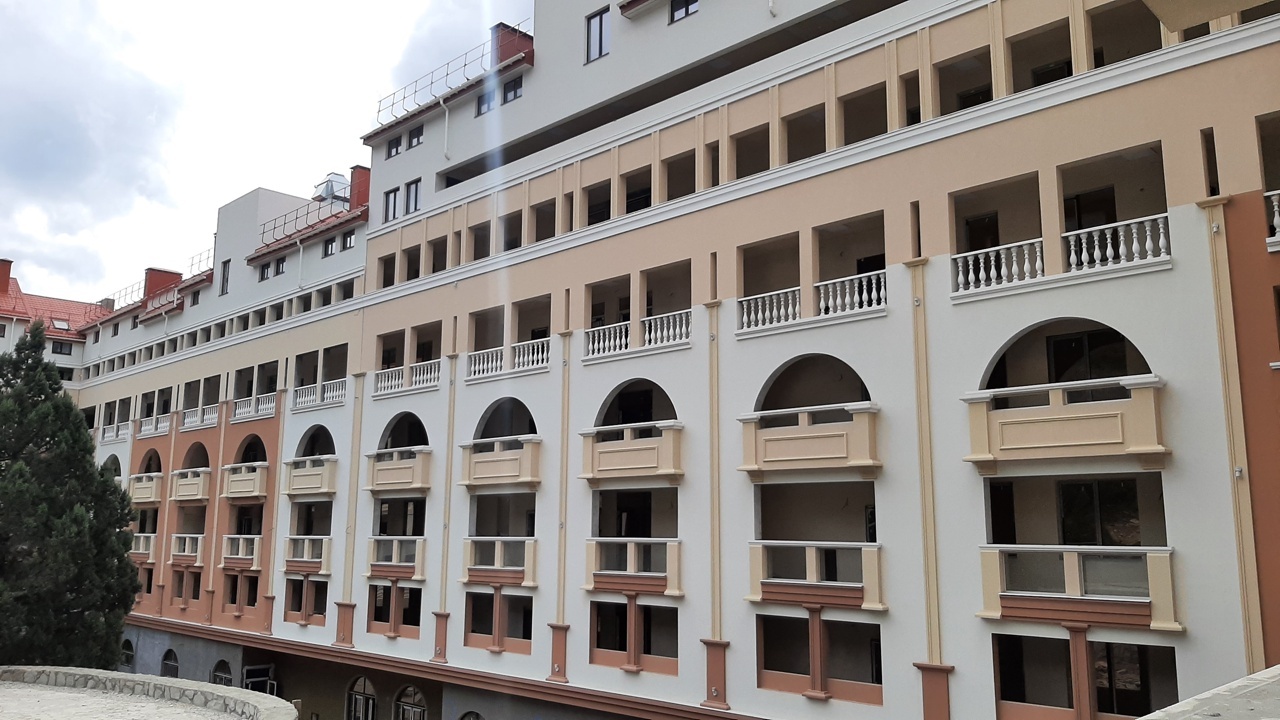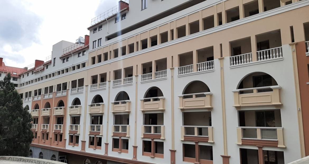 Дом бизнес-класса на 143 квартиры с видом на Черное море и Ялтинское побережье, окруженный Крымскими соснами и горами. Расположен в экологически чистом районе города, между Никитским ботаническим и Массандровским парками в 15 минутах от центральной набережной г. Ялты.