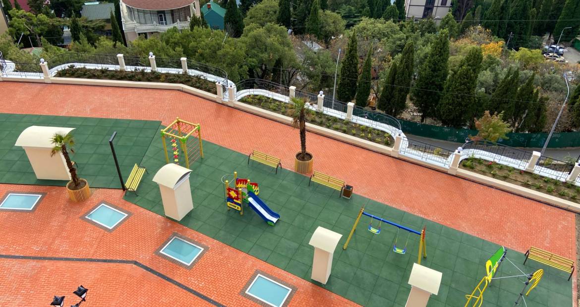 Расположен объект очень удобно: 7 км от Ялты и на границе с Никитским ботаническим садом. Место уютное, тихое и живописное. К пляжу 500 метров, пляж комфортабельный и протяженный с необходимой инфраструктурой, к пляжу можно добраться пешком и на электромобиле. Комплекс оборудован поземным паркингом в него можно спуститься на лифте, видеонаблюдением и охраной, на территории будет открыт ресторан и Спа комплекс.